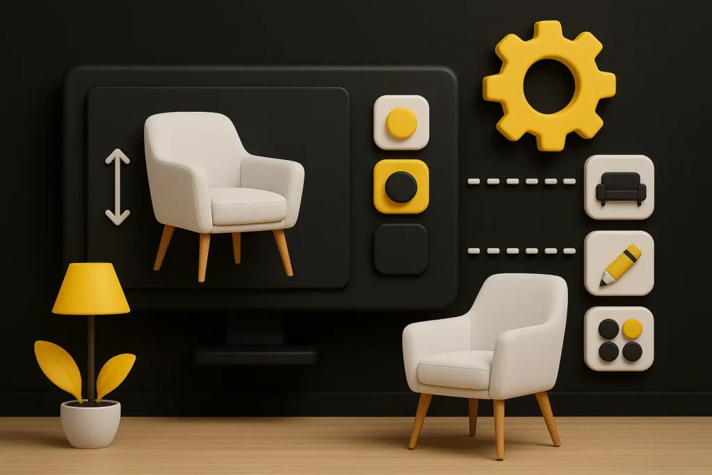 Transform your furniture business with interactive 3D configurators. Let customers visualize sofas, tables, chairs, and storage solutions in their space with real-time material, color, and dimension changes.