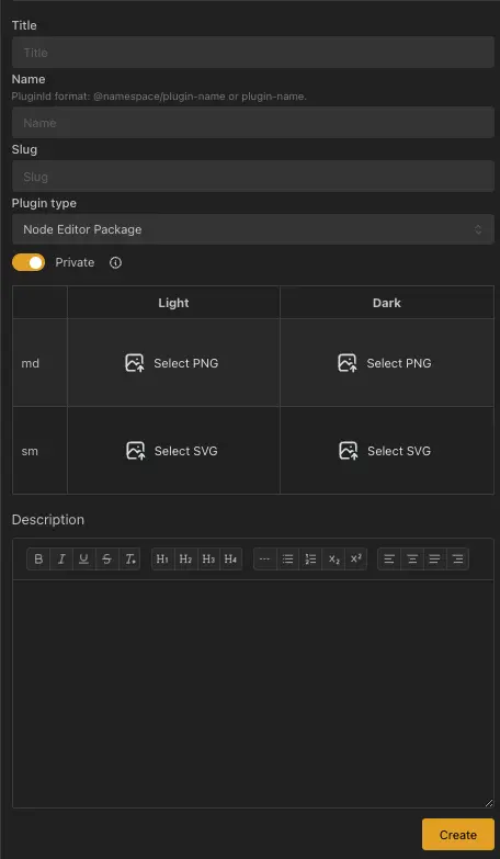 Once all fields are filled, click the “Create” button to complete the plugin creation.