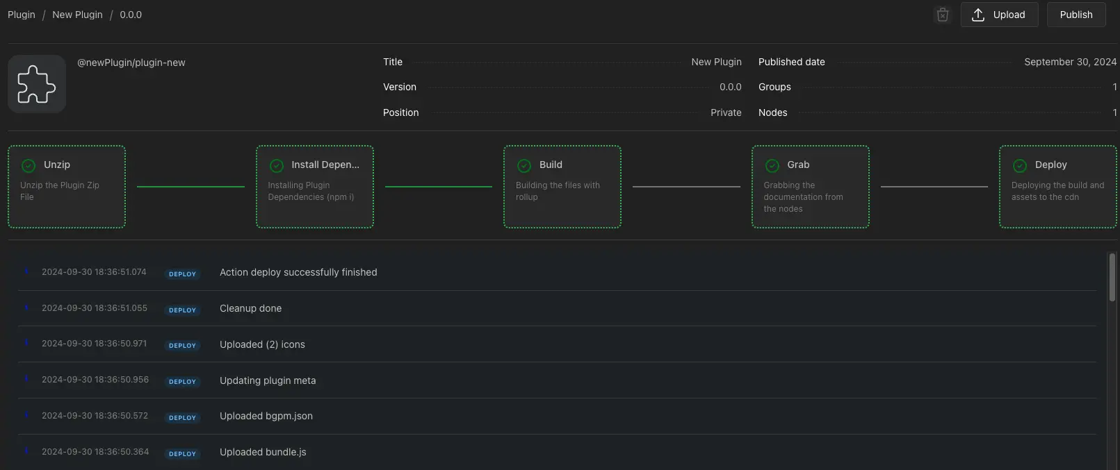 After creating the plugin, it will be visible in the designated section on the Plugins page. You can view and manage your newly created plugin from there.